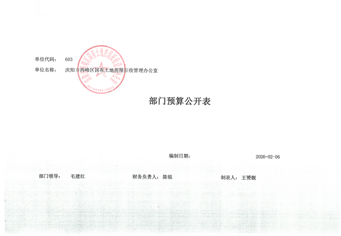 索引号: 62100202000/2026021103653 发布机构: 生效日期: 2026-02-11 废止日期: 文 号: 所属主题: 财政预算决算 庆阳市西峰区国有土地房屋征收管理办公室2026年部门预算公开 来源: 发布时间:2026-02-11 浏览次数: 次 【字体:小 大】 【打印正文】 分享到: