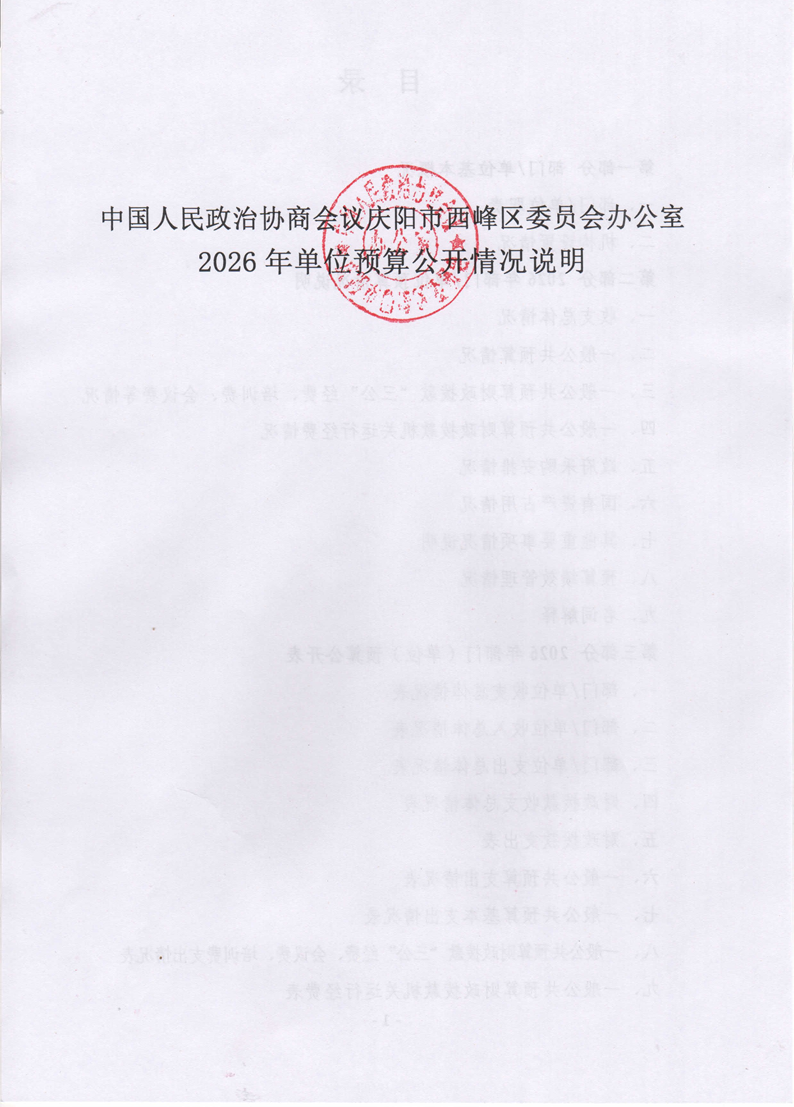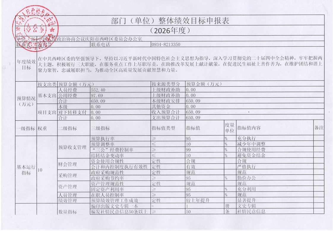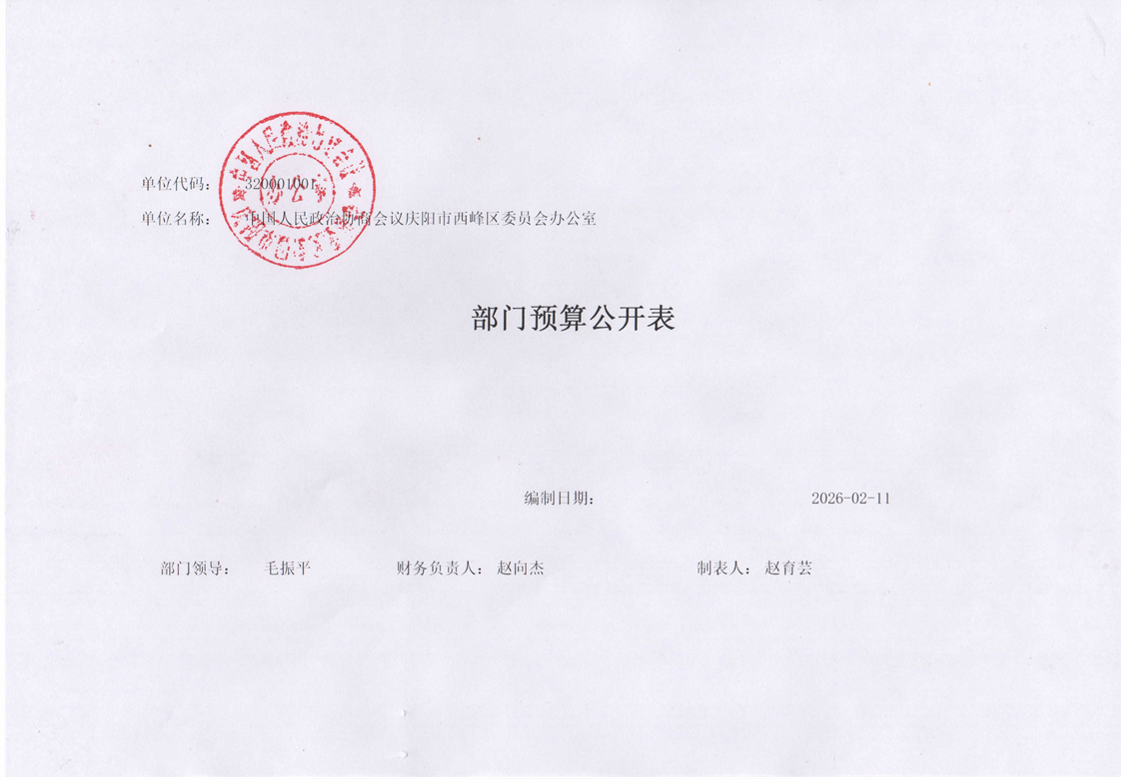 索引号: 62100202000/2026021103718 发布机构: 生效日期: 2026-02-11 废止日期: 文 号: 所属主题: 财政预算决算 中国人民政治协商会议庆阳市西峰区委员会办公室2026年部门预算公开 来源: 发布时间:2026-02-11 浏览次数: 次 【字体:小 大】 【打印正文】 分享到: