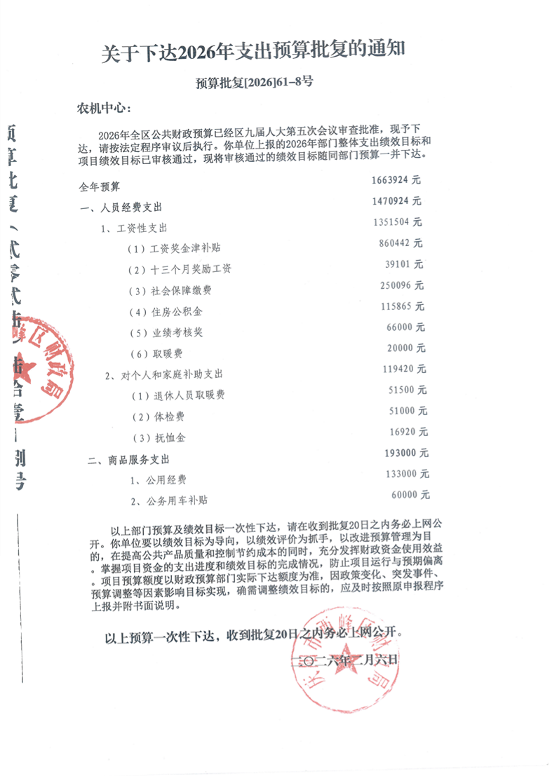 索引号: 62100202000/2026021203727 发布机构: 生效日期: 2026-02-12 废止日期: 文 号: 所属主题: 财政预算决算 庆阳市西峰区农业机械化服务中心2026年部门预算公开 来源: 发布时间:2026-02-12 浏览次数: 次 【字体:小 大】 【打印正文】 分享到: